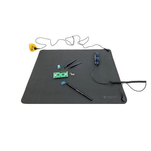 9-354-100 ESD masa matı siyah (500x400x0,5), 2x10 mm basma düğmeli